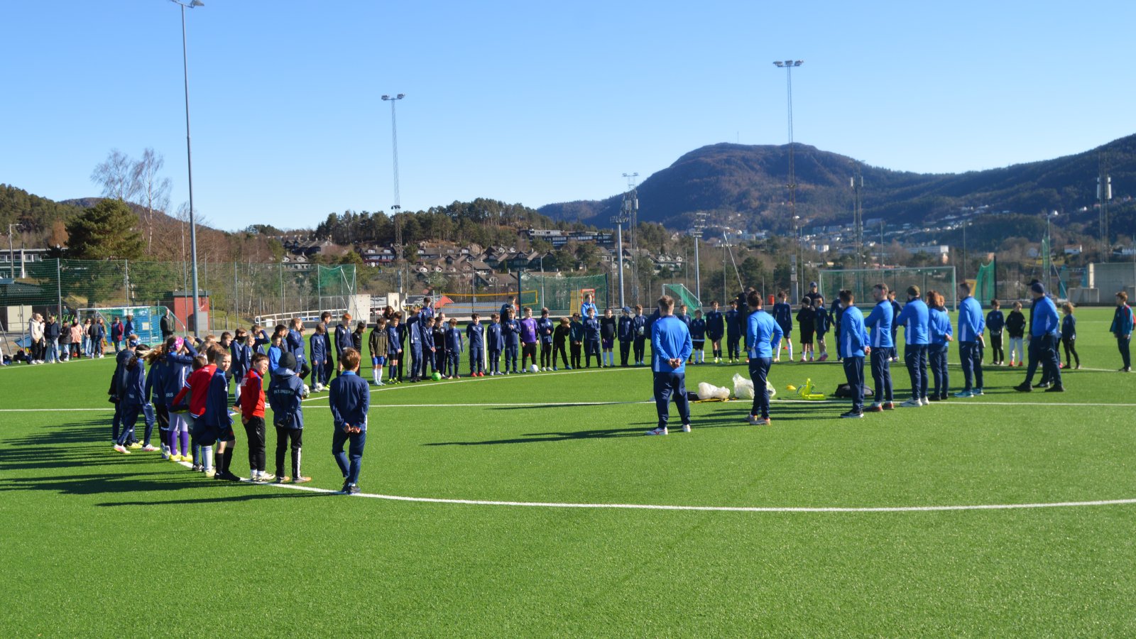 Akademileder Tom Mangersnes holdt en kort prat med alle de 90 deltakerne som møtte opp. Så ble de delt opp i mindre grupper. Spillerne ble satt i gang av trenerne, først med ulike øvelser og deretter mer og mer spilløvelser.